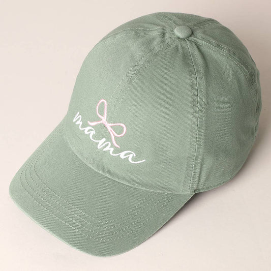 Mama Letter Bow on Top Embroidered Baseball Cap
