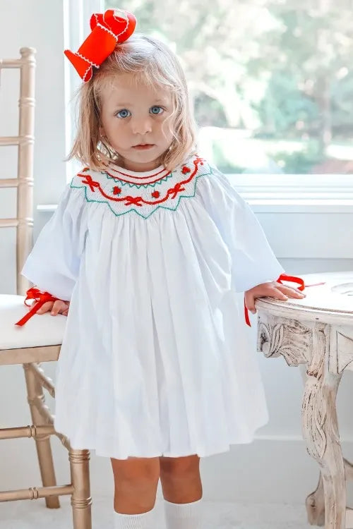 White Christmas Bow Smocked