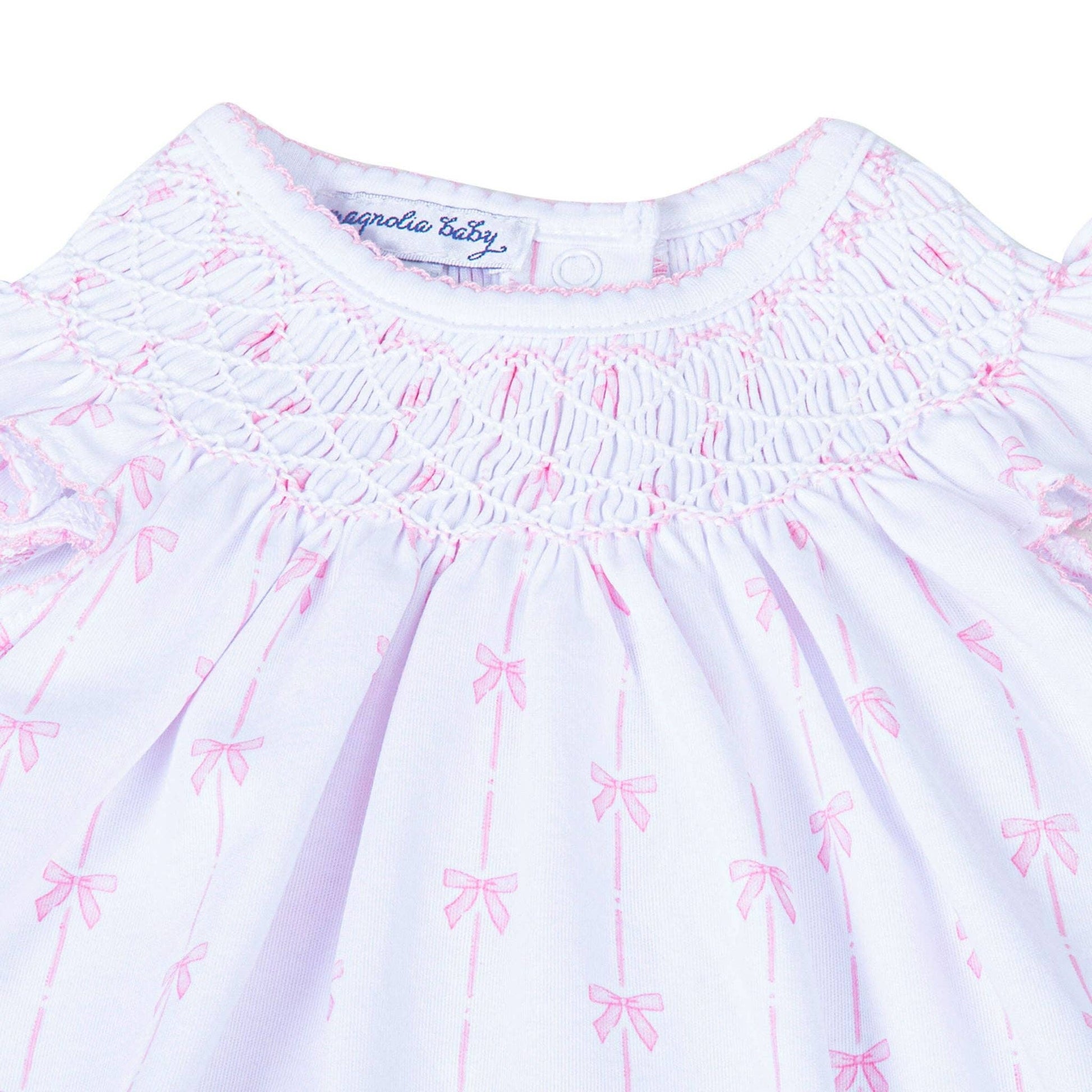 Magnolia Baby Amelia's Classics Bishop Dress Dress your little one in sweet elegance with our Magnolia Baby Amelia's Classics Bishop Dress. Crafted with the most luxurious Pima Cotton. Exquisite hand-embroidered detailing graces the neckline. Designed for ultimate comfort and style, it's a treasured addition to your baby's layette.