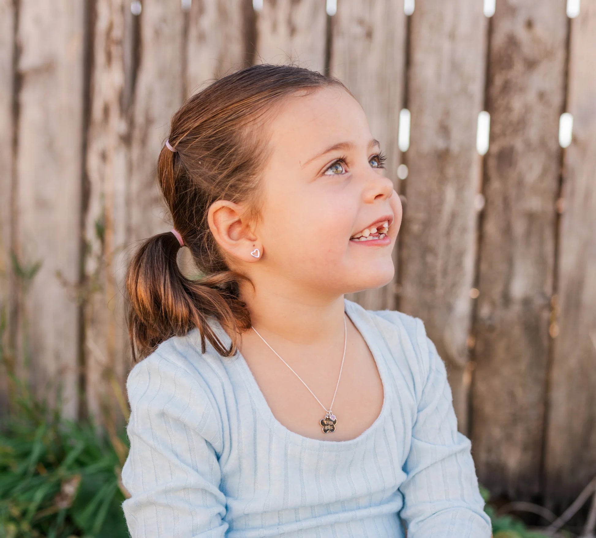 Adorable Sterling Silver "Big Sis" daisy flower charm necklace with pink sparkling heart accent on a 14" Italian Chain. What a special gift for new Big Sisters! Necklace comes in beautiful gift box that kids love.