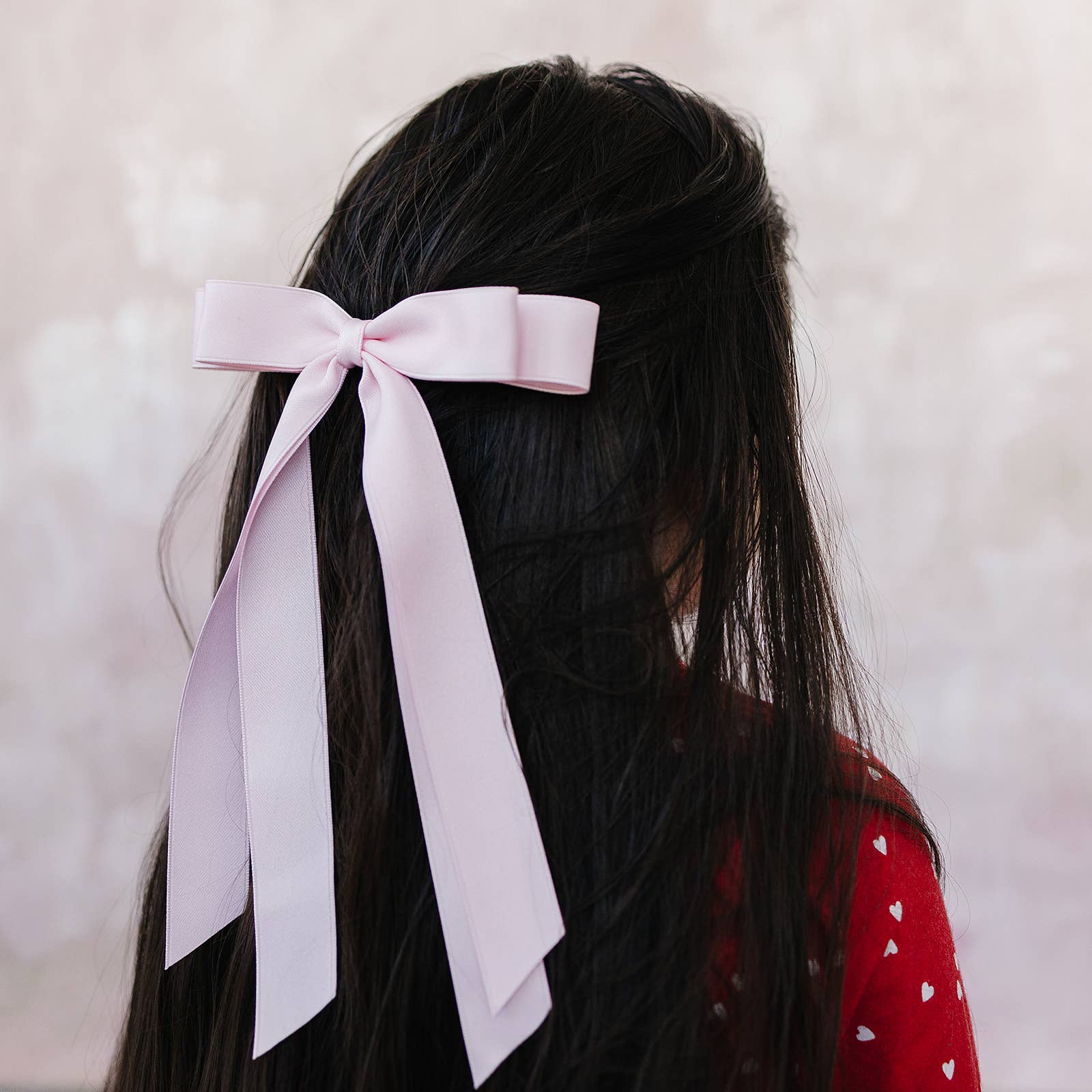 These 6” ribbon bow clips are the perfect accessory. Each clip is a high quality alligator clip to stay secure in hair all day long! Each bow is made from high quality silky long ribbons and double layered ribbons on each bow.