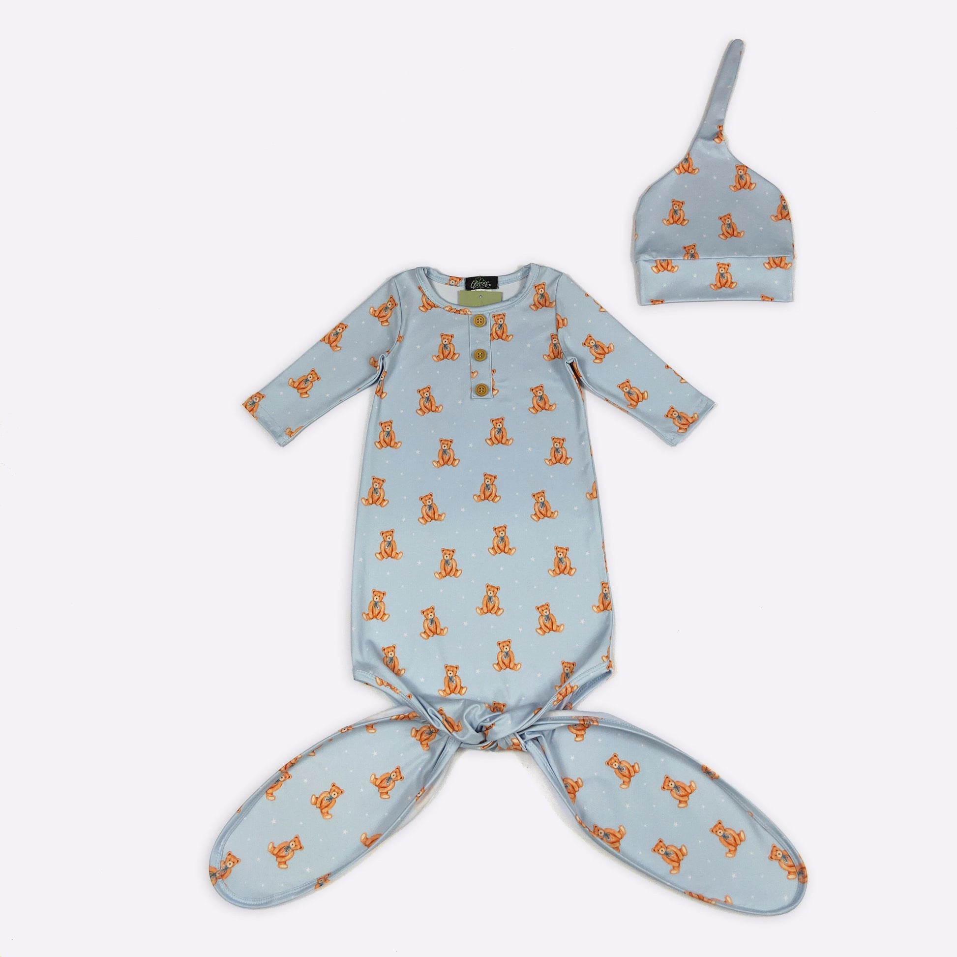 Enjoy sleep or play time when wearing this adorable baby gown and matching hat. Fits Newborn to 6 months!