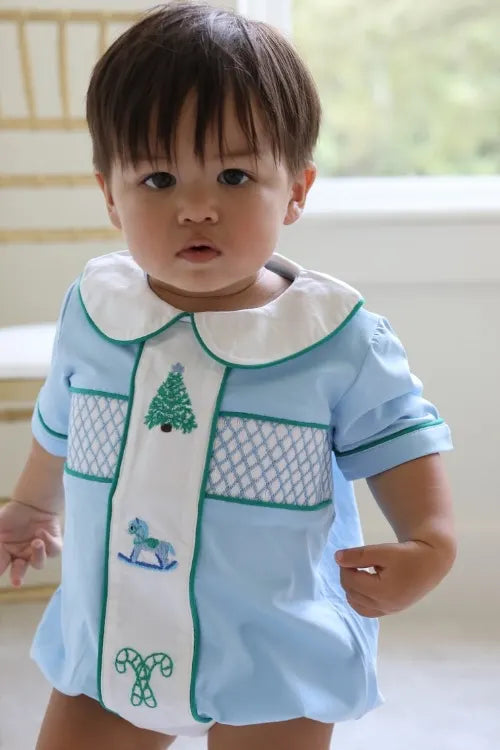 Make a statement this holiday season with the Celebrate Christmas Blue outfit! This charming outfit is smocked to perfection and features a playful bubble design. Let your little one stand out in this unique and fun ensemble. Perfect for photos and holiday celebrations.