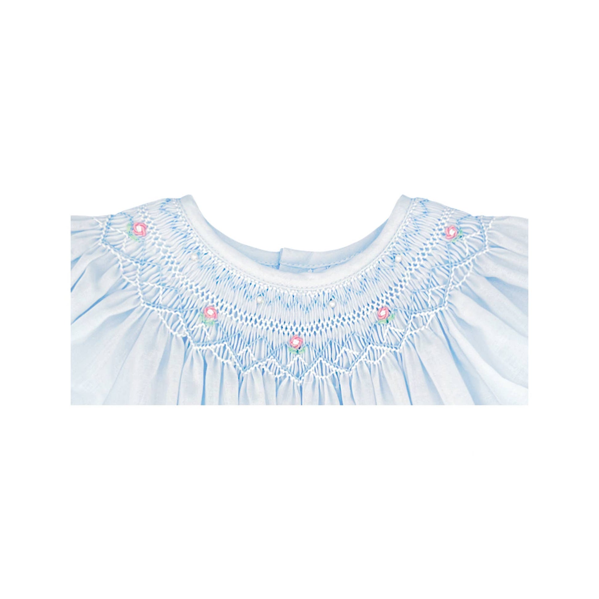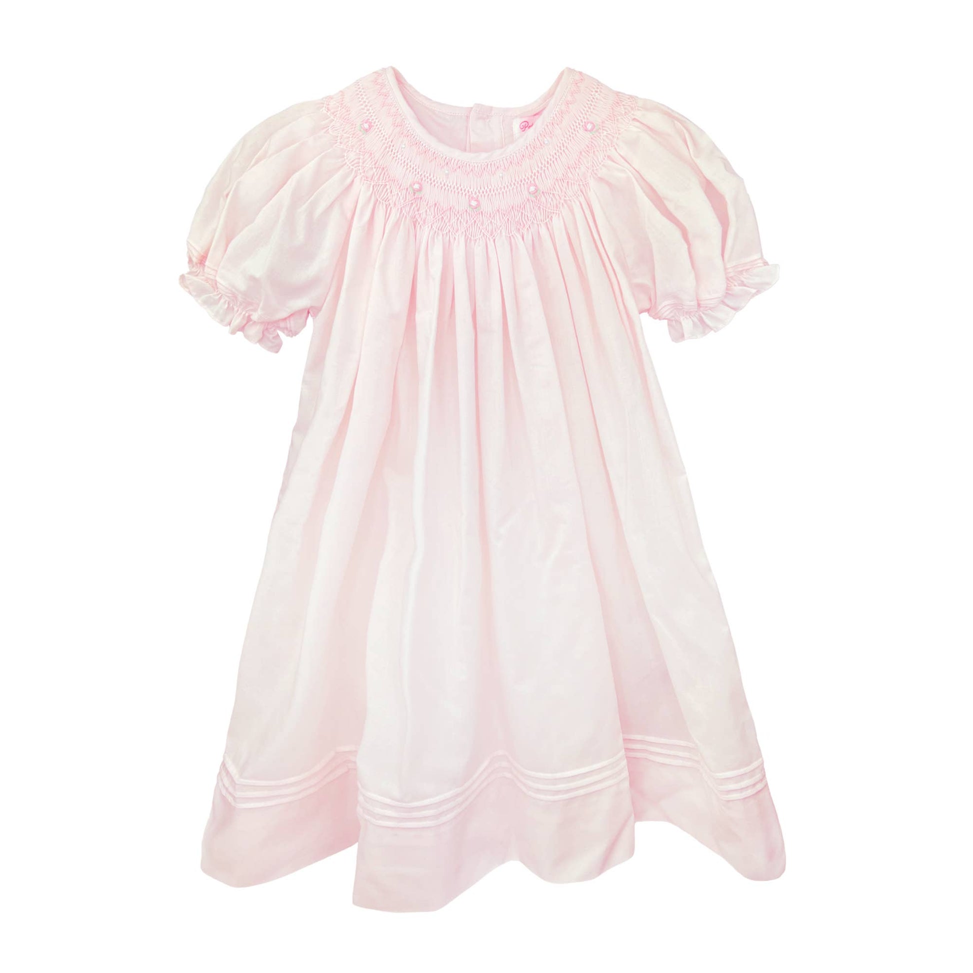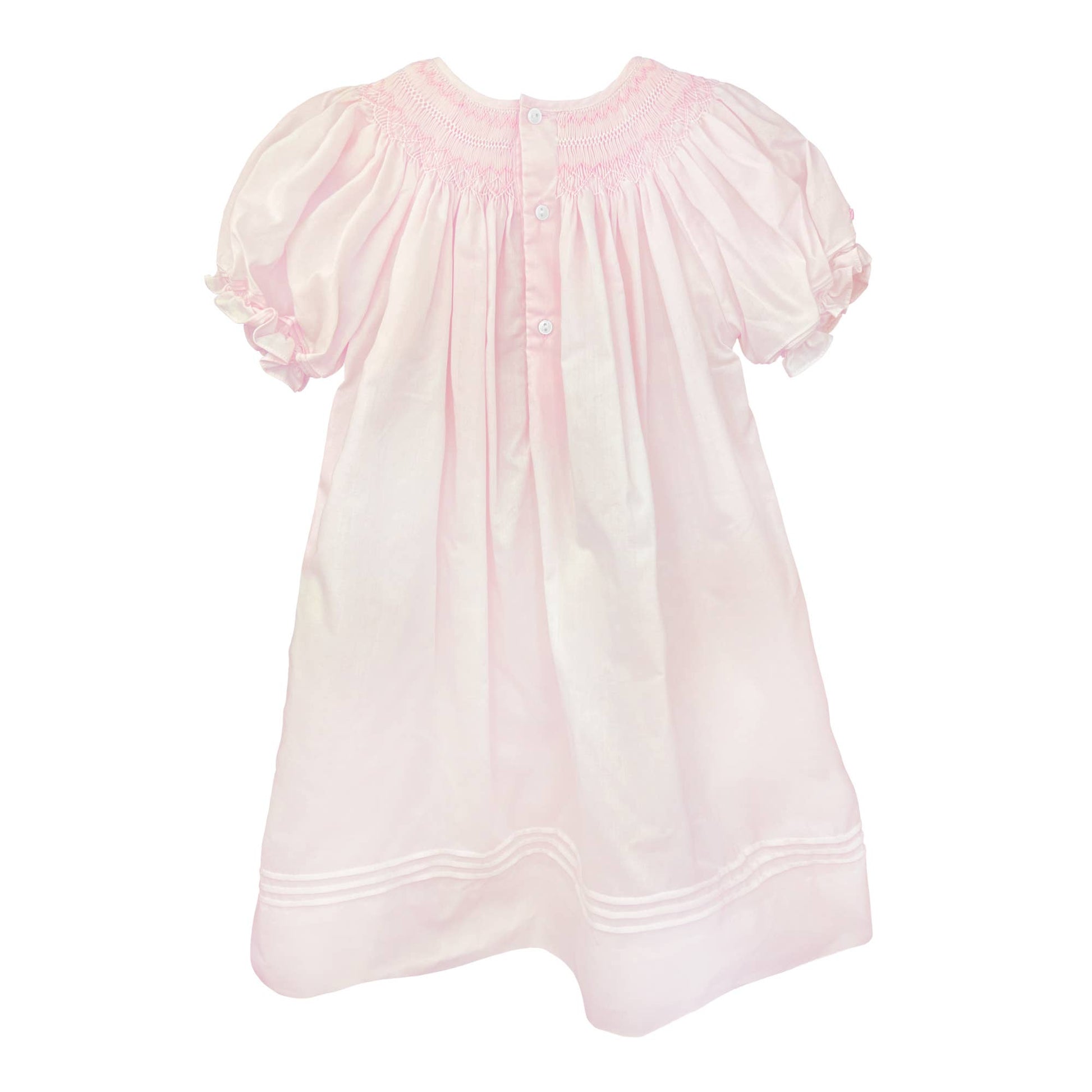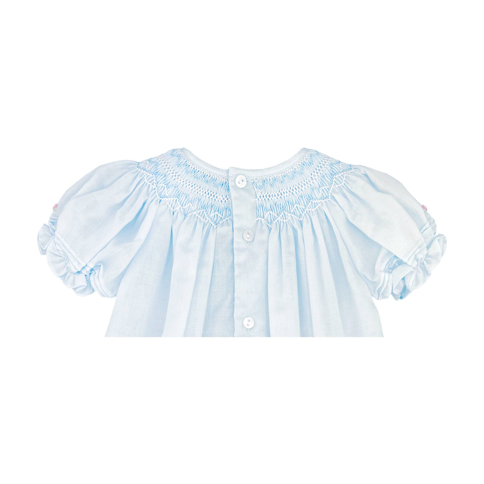 Featuring heirloom-quality handcrafted details like heart smocking and embroidered flowers with pearl accents, this piece is sure to become a treasured keepsake.