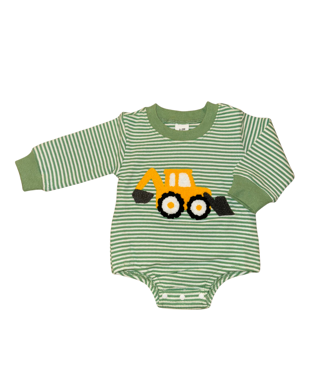Dig into playtime with the Excavator Bubble long sleeve! This cheerful bubble features a bold excavator design that'll have little builders excited to get dressed.
