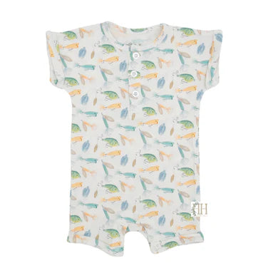 Get your little man ready for a day by the lake with our Gone Fishing Button Romper! This adorable romper features a playful button design and is perfect for your little boy.