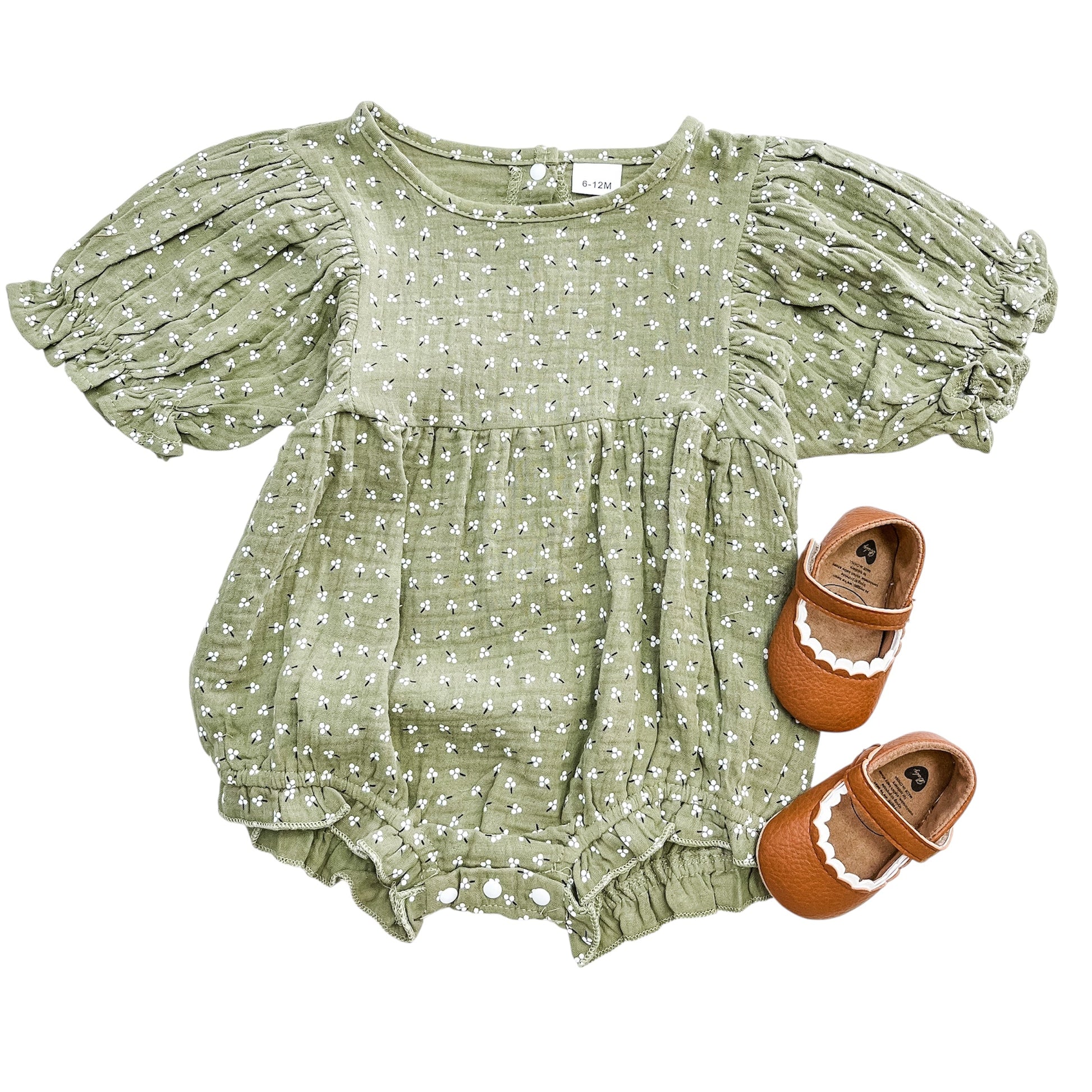 Dress your little one in the Heather Olive Romper, a playful and comfy outfit perfect for everyday adventures. Its soft, breathable fabric lets her move freely while keeping her cozy. Comes with a matching headband!