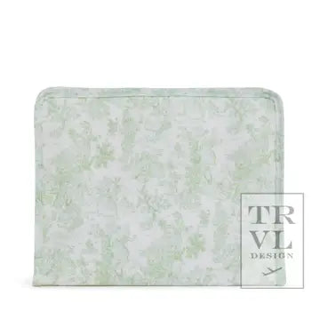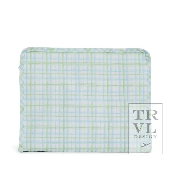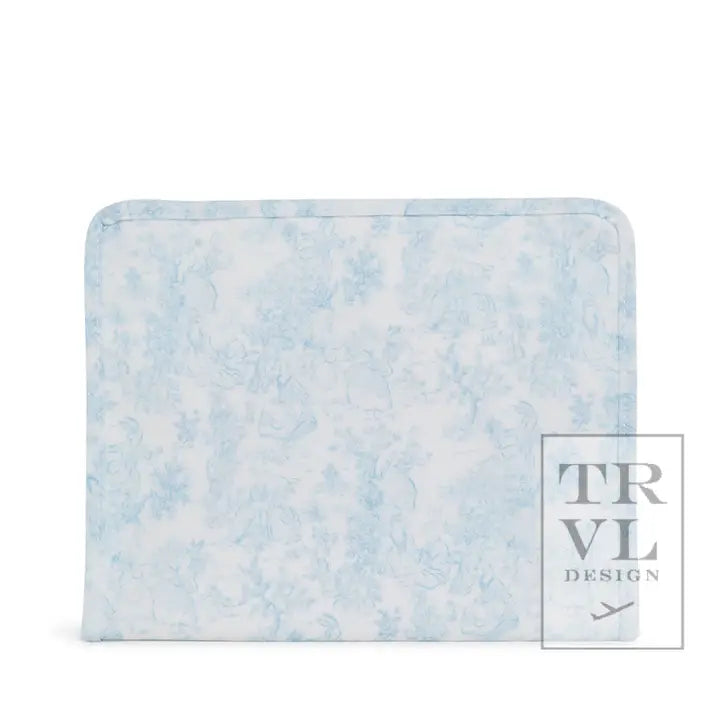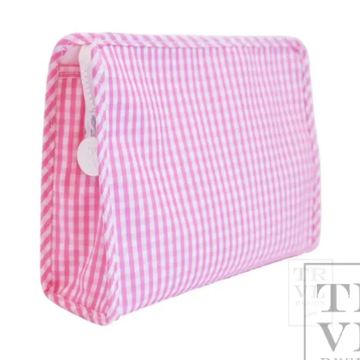 Our best-selling Roadies are our BFFs in the pouch world! Our Large Roadie is made with a thin Eco-friendly matte coating, an inside slip pocket and exterior snap open zip tabs for a wider opening and an easier access. Size: 10.5"l x 8.75"h x 3.5"d. Coated Cotton, Lined in poly twill, and Chunky White Zipper with snap closure. Water and stain resistant & wipeable inside and out.