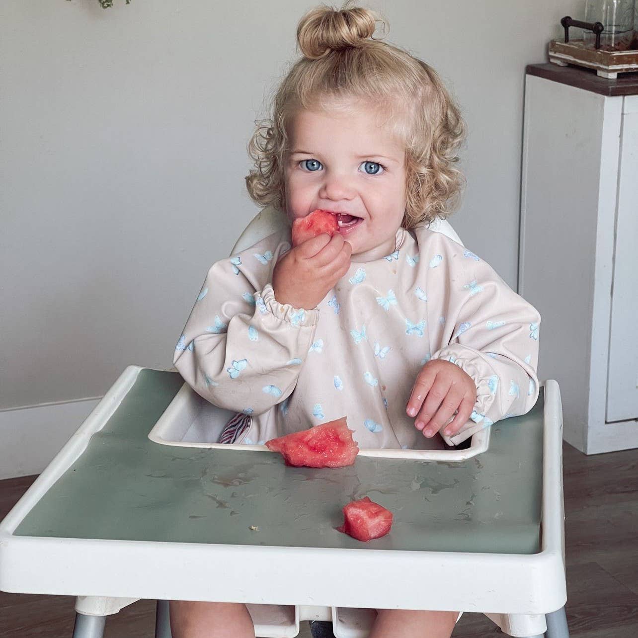 The smock features a waterproof design, ensuring that your child's clothes stay clean and dry during mealtime, painting, or any other messy activity. With its adjustable neck velcro closure, the smock is easy to put on and take off and fits comfortably on your child.